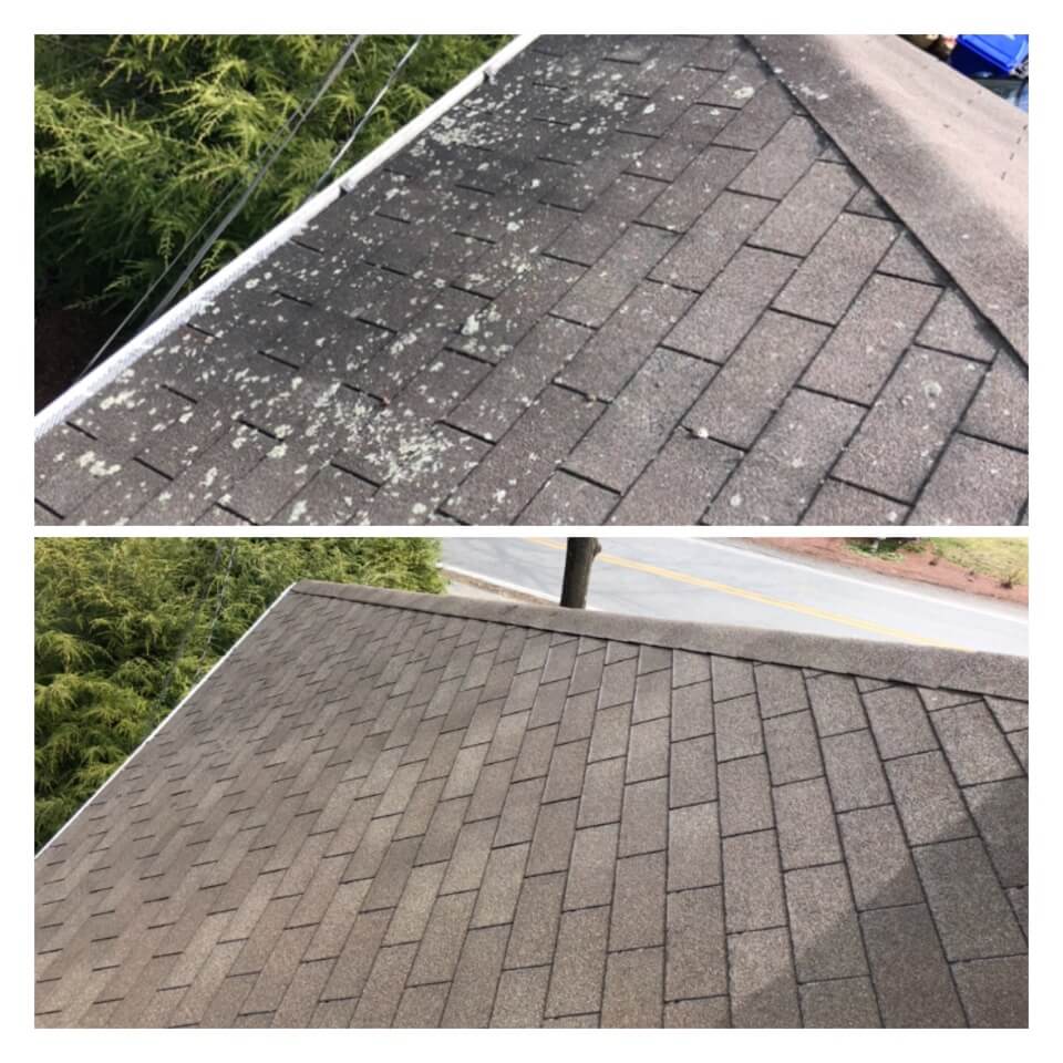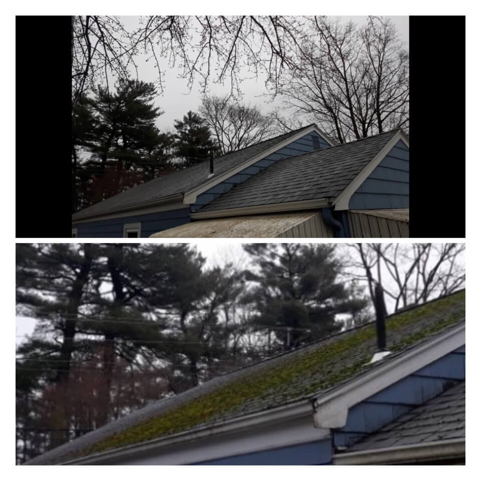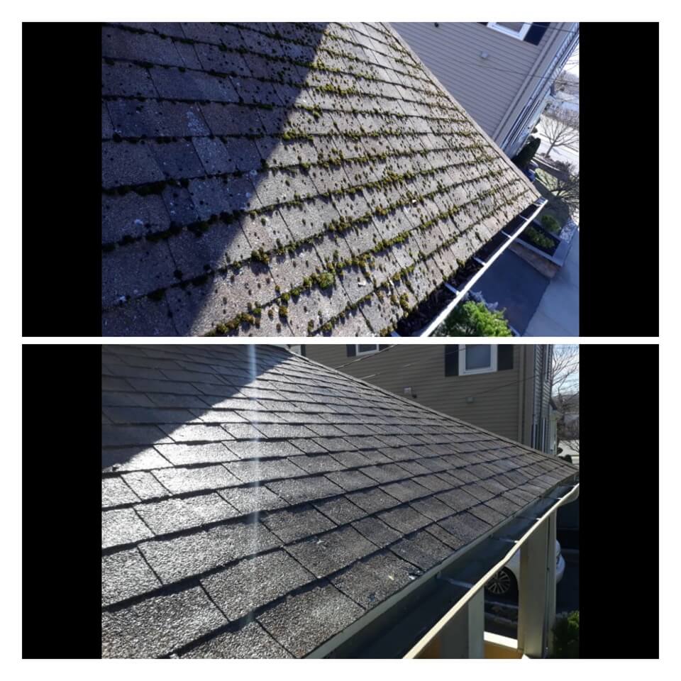 HiCleaners is the most experienced company in Attleborough, MA that deals with roof washing and roof soft washing. All of our employees are trained to recognize precise solution mixing ratios to provide you with the safest and most effective soft washing service. Roofs are a commonly neglected part of a house due to the fact that most people don’t have ladders to access it, so it is very easy to just leave it alone and forget about problems that may start to arise. Just like many home owners, discoloration and small bits of moss on a roof can be overlooked because of the misconception that it is just aesthetic. However, it isn’t just aesthetic, the moss slowly lifts the granules off the shingles which in turn shorten the life of the shingle. The moss also spreads, just like any bacteria if it is left alone for too long, it can quickly become a problem that spirals out of control. Call HiCleaners for a free quote, we only use the most advanced eco-friendly solutions and equipment to make sure the job is done right, for the safety of the employees, your plants, grass, pets, and children.