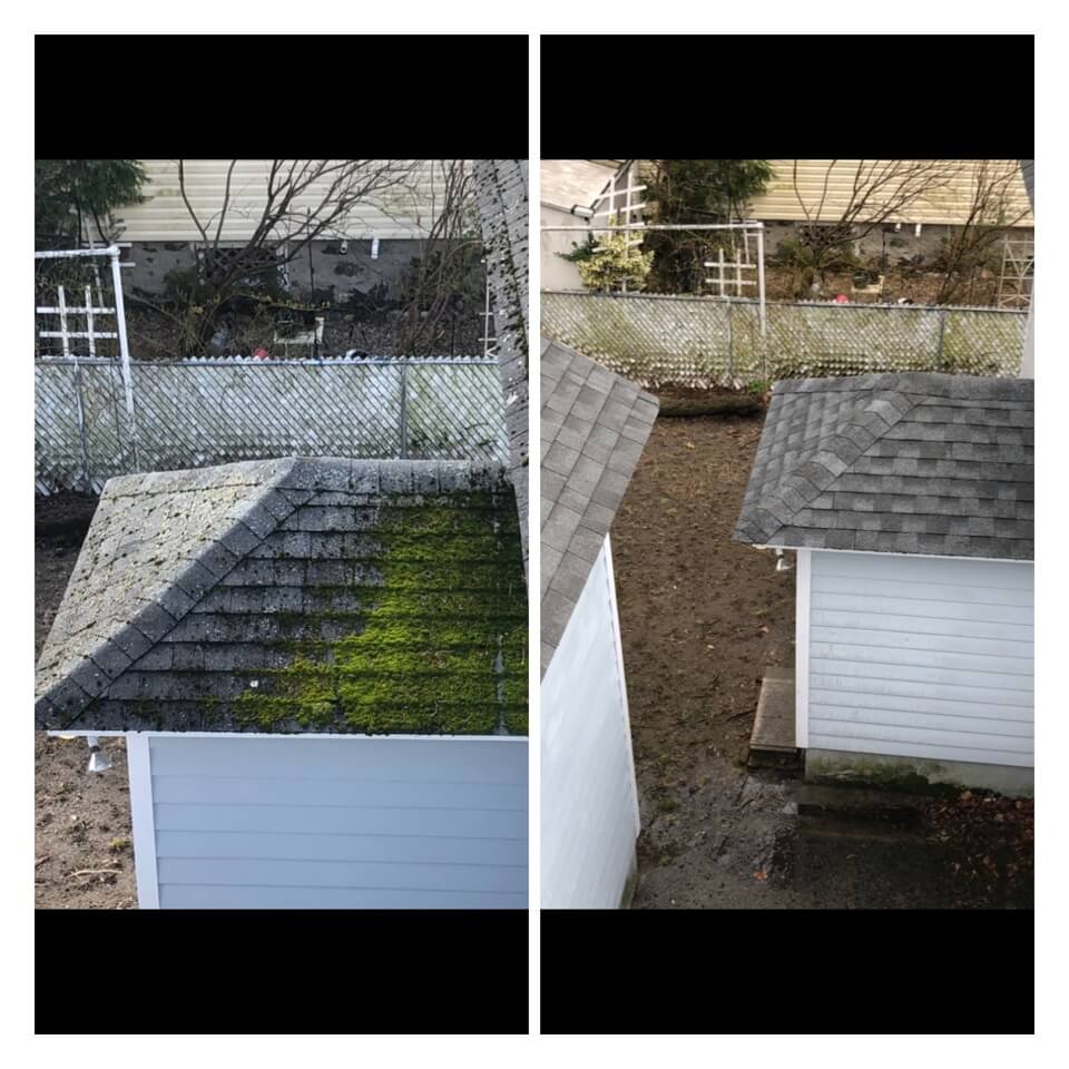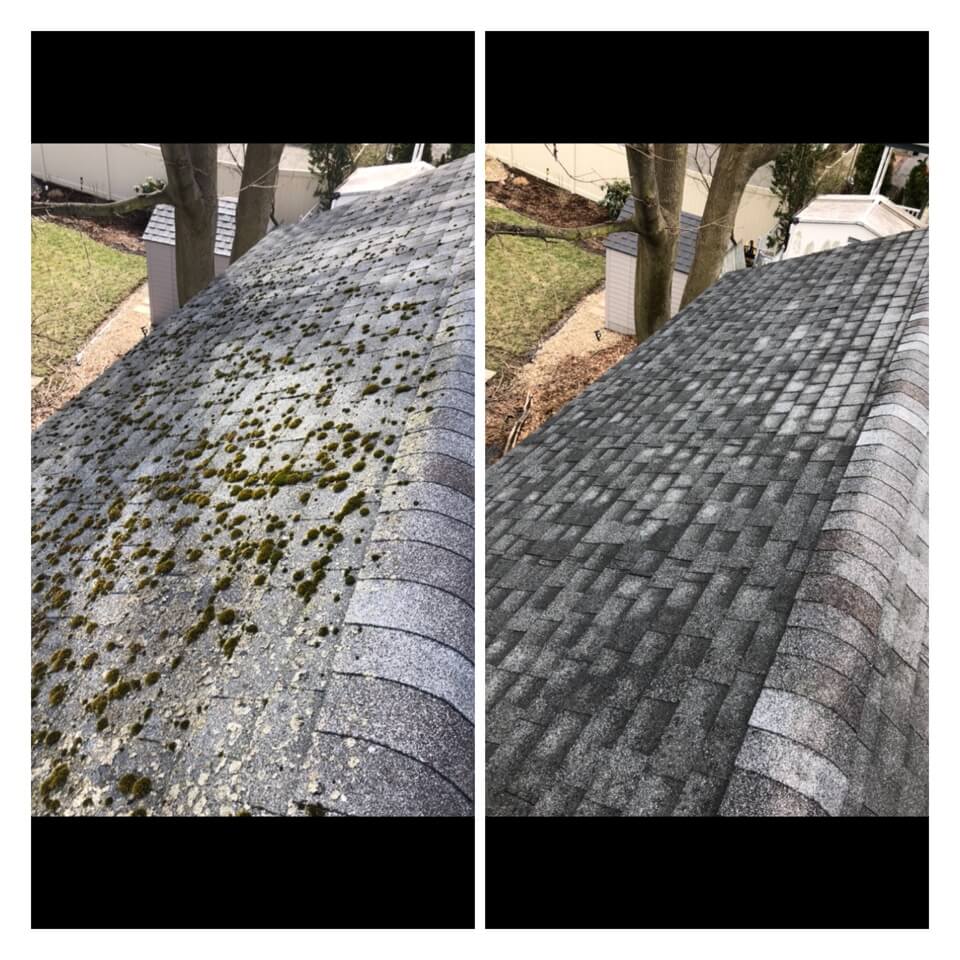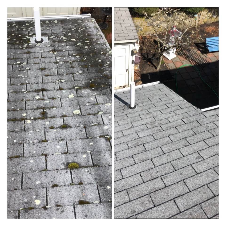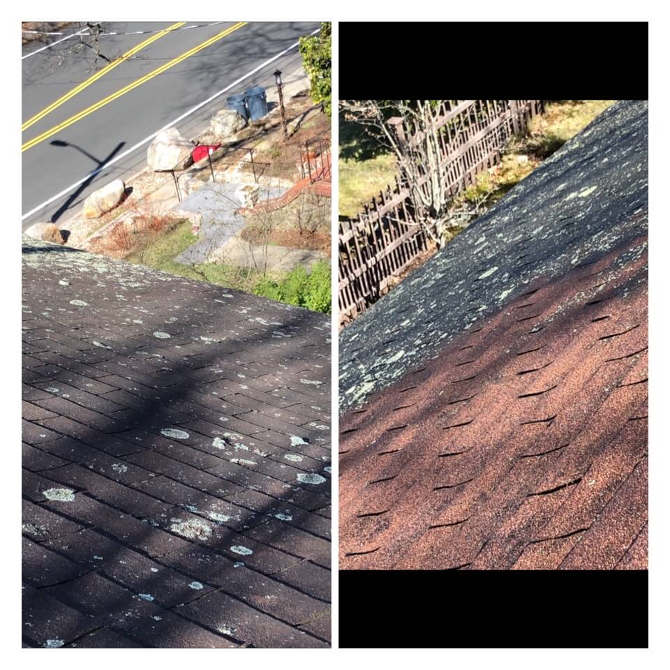 HiCleaners is the most experienced company in Attleborough, MA that deals with roof washing and roof soft washing. All of our employees are trained to recognize precise solution mixing ratios to provide you with the safest and most effective soft washing service. Roofs are a commonly neglected part of a house due to the fact that most people don’t have ladders to access it, so it is very easy to just leave it alone and forget about problems that may start to arise. Just like many home owners, discoloration and small bits of moss on a roof can be overlooked because of the misconception that it is just aesthetic. However, it isn’t just aesthetic, the moss slowly lifts the granules off the shingles which in turn shorten the life of the shingle. The moss also spreads, just like any bacteria if it is left alone for too long, it can quickly become a problem that spirals out of control. Call HiCleaners for a free quote, we only use the most advanced eco-friendly solutions and equipment to make sure the job is done right, for the safety of the employees, your plants, grass, pets, and children.